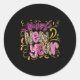 Pegatina Redonda Happy New Year Hello 2026 Retro Leopard