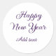 Pegatina Redonda Happy new year purple calligraphy simple minimal