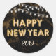 Pegatina Redonda Happy New Year String ilumina los globos de oro ne