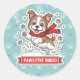 Pegatina Redonda Happy Puppy Winter Snow Sticker