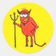 Demonio rojo personalizado con cuernos negros, cabra, dos tiras de pelo y una sonrisa amarilla cursi, sosteniendo una horquilla. Personalizado digital original de Taylor Addams.