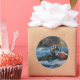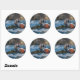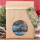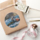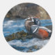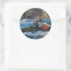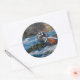 Pegatina Redonda Harlequin Duck en el surf oceánico