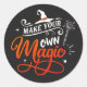 Este moderno diseño de vacaciones presenta el texto "Haz tu propia magia" en la tipografía moderna acentuada por una varita, el gorra de brujas y las estrellas. Ideal para Halloween. #halloween #feriados #temporada #festive #magia #motivación #motivación #dichos motivacionales #palabras #aliento #hechizo #bruja #varita #estrellas #fiesta #moderno #trendy #trending #trending #estilo #elegante #moda #diseño #diseñador #popular #pegatinas #suministros de fiesta #sobres #etiquetas #etiquetas