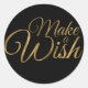 Pegatina Redonda Haz un Deseo Cumpleaños Negro y Dorado