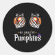 Pegatina Redonda He Likes My Pumpkins Skeleton Hand Halloween Coupl