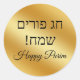 Pegatina Redonda hebrew happy purim, gold metallic minimalist