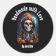 Pegatina Redonda Hecha a mano con amor Spooky Skeleton con calabaza