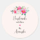 Pegatina Redonda Hecha a mano con Love Pink Flower Bouquet