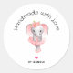 Pegatina Redonda Hecho a mano con amor Cute Elefante Rosa Ballerina