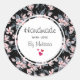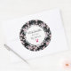 Pegatina Redonda Hecho a mano con amor Patrón floral rosa y gris