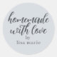 Rústico y moderno personalizado casero con amor sticker presenta un estilo caligráfico de letra manuscrita en un fondo azul pastel. ¡Perfecto para todos tus regalos caseros! Simplemente agrega tu nombre a la etiqueta. ¡Diseñado exclusivamente para ti por Happy Dolphin Studio!