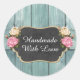 Pegatina Redonda Hecho a mano con amor Shabby Rosas de la época Rus
