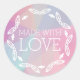 Pegatina Redonda Hecho con Amor Boho Chic Plumas Pastel Geométrico