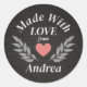 Pegatina Redonda Hecho con Amor Nombre personalizado