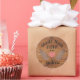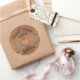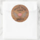 "Personaliza" este clásico pegatina redondo con "Hecho con Amor desde..." sobre un fondo rústico de madera y tu nombre con corona botánica y corazón rosa! Compruebe todas las opciones antes de realizar el pedido.