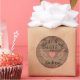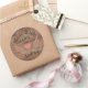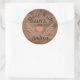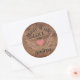 "Personaliza" este clásico pegatina redondo con "Hecho con Amor desde..." sobre un fondo rústico de madera y tu nombre con corona botánica y corazón rosa! Compruebe todas las opciones antes de realizar el pedido.
