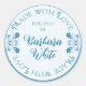 Pegatina Redonda Hecho con amor para ti azul turquesa floral
