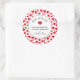 Haz que tu producto destaque con estos Pegatinas redondos clásicos personalizados de Valentines Red Hearts. Este bonito diseño moderno tiene un patrón cardíaco dibujado a mano roja sobre fondo blanco. El centro ha "hecho con amor" en letras flacas seguido de tu texto personalizado.