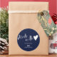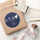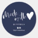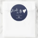 Pegatina Redonda Hecho con escritura de amor azul marino minimalist
