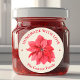 Pegatinas redondas personalizadas para las fiestas de Navidad con una elegante poinsettia roja con tu nombre y saludo en letra chic en rayas marfil. Todo el texto, las fuentes, los colores de las fuentes se pueden modificar, simplemente haz clic en el enlace "personalizar más".