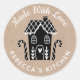 Un pegatina personalizado "hecho con amor" que presenta una linda casa de jengibre con un corazón y las palabras, hechas con amor en un fondo de color kraft. Personalízalo añadiendo tu propio nombre. Un toque de bonito para todos tus regalos caseros. Diseñado para ti por Blackberry Boulevard.