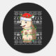 Pegatina Redonda Hedgehog Christmas Lights Ugly Sweater Funny Santa