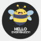 Pegatina Redonda Hello Everybuzzy Funny Bee Pun Dark BG