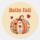 Pegatina Redonda Hello Fall Pumpkin Leaf