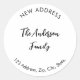 Nos hemos movido, regresamos pegatina de dirección. Personalice y agregue su nombre de familia, su nueva dirección. Texto curvado. Fondo blanco, texto negro.