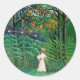 Pegatina Redonda Henri Rousseau - Mujer caminando en un bosque exót