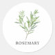 Este pegatina de hierbas presenta romero acuático con texto personalizado. Ideal para etiquetar las especias de la cocina.