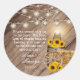 Pegatina Redonda Hermosa barrica de madera rústica y girasoles