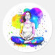 Pegatina Redonda Hermosa dama de arte espiritual meditando