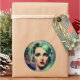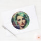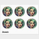 Pegatina Redonda Hermosa lavanda y verde estilo retro mujer