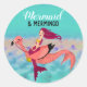 Pegatina Redonda Hermosa sirena malva y Mermingo rosa