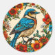Pegatina Redonda Hermosamente ilustrado pájaro