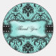 Pegatina Redonda Hermoso Aqua Blue and Black Damask Gracias