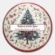 Pegatina Redonda Hermoso árbol de Navidad Holly Red Satin
