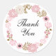 Pegatina Redonda Hermoso Aro Floral Rosa Pastel Gracias