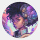 Pegatina Redonda Hermoso Chica afrohaído