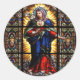 Pegatina Redonda Hermoso Corazón Sagrado Religioso de la Virgen Mar