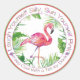 Pegatina Redonda Hermoso Flamingo y Diversión de Palmeras