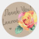 Pegatina Redonda Hermoso Gracias Rosa de color de agua