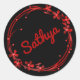 Pegatina Redonda Hermoso nombre floral rojo personalizado