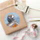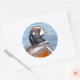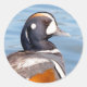 Pegatina Redonda Hermoso pato Harlequin en la roca