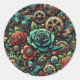 Pegatina Redonda Hermosos engranajes y Rosas temáticos de Steampunk