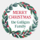 Feliz Navidad de pegatina con un hermoso Navidad coronado de vegetación y bayas personalizadas con tu apellido. Navidades coronaban Navidades regalando pegatina en verde y rojo con una corona de berry.