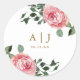 Pegatina Redonda Hermosos Rosas con Monograma y Fecha Boda