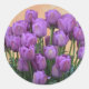 Pegatina Redonda Hermosos tulipanes de primavera morada