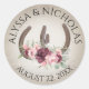 Herraduras y mauve rosa y borgoña Flores rústicas granero favorecen al pegatina con los nombres de novias y novios y fecha boda.